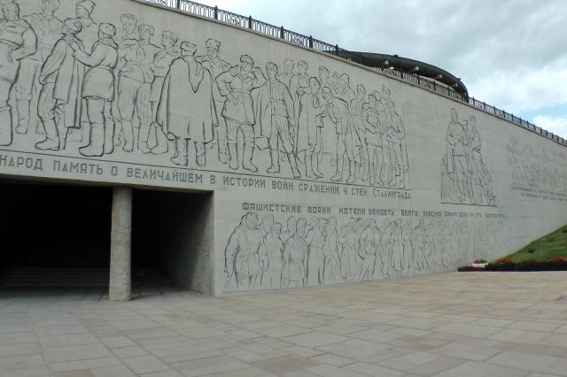 Unser Schiff erreicht gegen 10.00 Uhr die Schicksalsstadt Stalingrad. Auf Grund der Zerstörungen im Krieg, gibt es hier die typische sowjetische Architektur aus den 1950er und 1960er Jahren. Am Flussufer stehen allerdings zwei neue Hochhäuser im Stile des Burj Al Arab in Dubai. Wir besuchen den Marmajev-Hügel mit der 85 Meter hohen Mutter Heimat. Während des Aufstiegs sind die original Kampfgeräusche aus der Schlacht um Stalingrad zu hören. Ein beklemmendes Gefühl macht sich breit.Soldatenfriedhof
