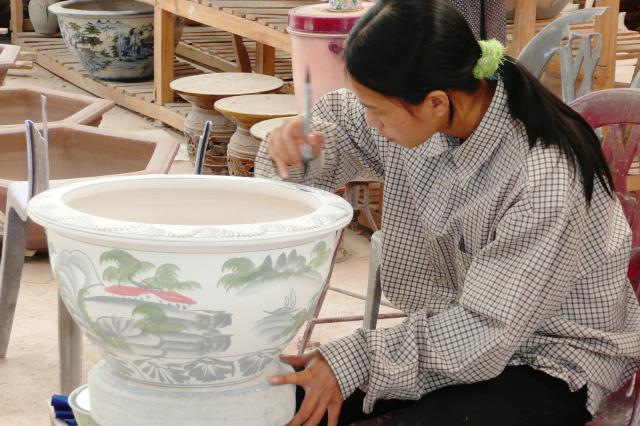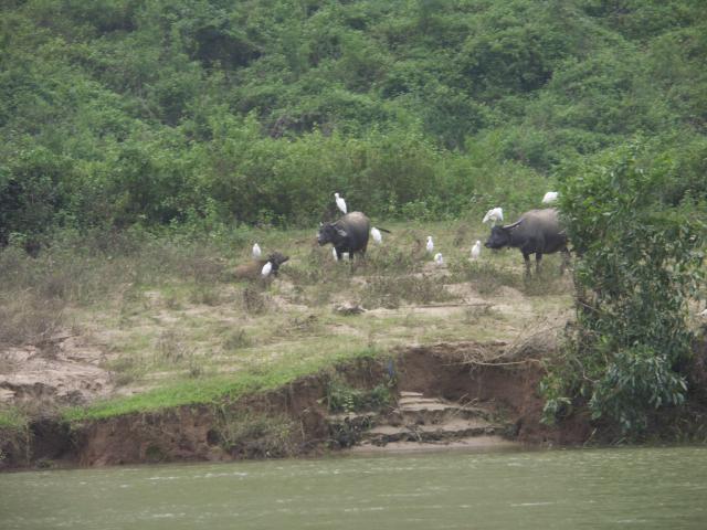 Auf der Weiterfahrt durch die landschaftlich reizvollen Orte Hoa Lu und Phat Diem besuchen wir noch den Dinh-Tempel und eine Katholische Kirche, die im asiatischen Stil eines Tempels gebaut wurde und von einem europäischen Fremden nicht als Gotteshaus identifiziert werden würde. Einen besonderen Eindruck hinterlässt auch das schwimmende Dorf Kenh Ga, in dem die Dorfbewohner auf Booten leben. An diesem Tag hat es immer wieder schwere Regengüsse gegeben. Überhaupt muss man in Vietnam ständig mit kurzfristig aufkommendem Starkregen rechnen. Allerdings ist er genauso schnell wieder vorbei wie er angefangen hat.